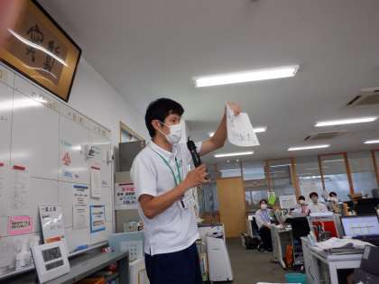 芝園中学校では、毎日「ひるどきミーティング」として11:40から職員の打ち合わせをしています。そこでは、連絡事項の確認はもとより、夏季休業中に教職員が研修してきたことを、発表しています。
