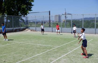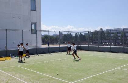 日差しが照りつける中ですが、声を出して練習に励んでいます。