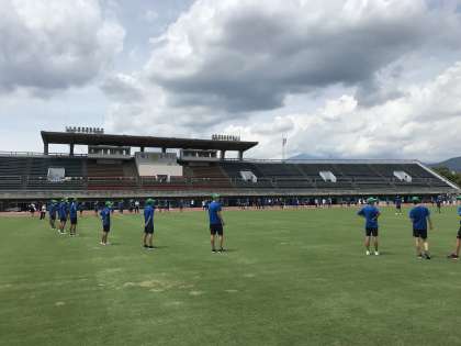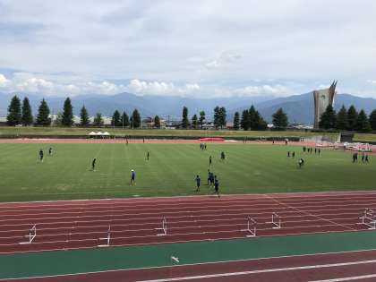 8月2日(火) 競技場で前日練習を行っています。明日の本番に向けて暑い中、頑張っています!