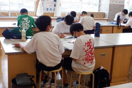 超スペシャルSKIP 3日目 その4 公開日 2022/08/03 更新日 2022/08/03 芝園の一日 8月3日(水) 13:30 被服室で学習をしている生徒もいます。Tシャツに描かれた「がんばろう芝園」の文字に、気合いが入りますね。