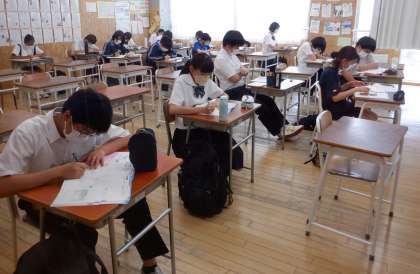 超スペシャルSKIP 3日目 その5 公開日 2022/08/03 更新日 2022/08/03 芝園の一日 8月3日(水) 2年生は、2−B、C、Dは教室で行っています。間違えた問題を何度もノートにやり直すなど、工夫して学習を進めています。