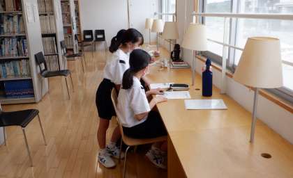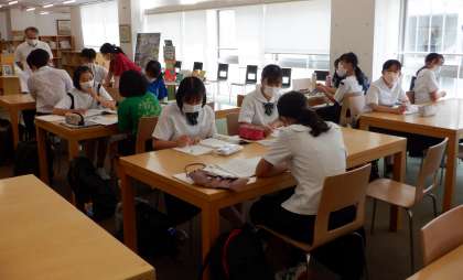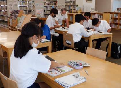 8月3日(水) 図書館では、1−A、2−A、3年生が学習しています。