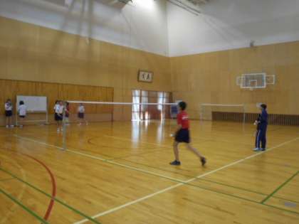 バドミントン部の活動の様子です。体育館の気温が高いので、熱中症対策を考えて活動しています。新人大会まで1ヶ月近くとなりました。基礎的な打ち方を中心に練習に取り組んでいました。