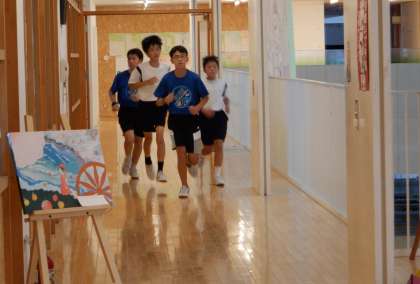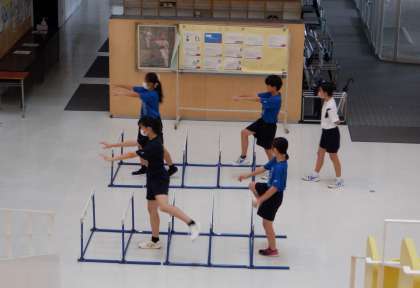 8月18日(木) 陸上競技部の活動の様子です。午前中は雨が降っていたので、校舎内での活動です。
