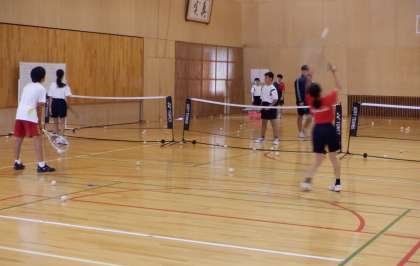 今日の部活動(ソフトテニス部) 公開日 2022/08/18 更新日 2022/08/18 芝園の一日 8月18日(木) ソフトテニス部の活動の様子です。本日は雨のため、体育館の中での活動です。狭いスペースを上手に使って、練習に励んでいます。