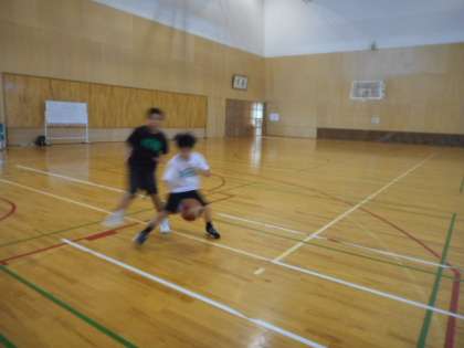 男子バスケットボール部の活動の様子です。攻守の切り替えを意識した練習に取り組みました。シュートをした後に、すぐにディフェンスの構えをとり、相手のコースに入って守備をすることを意識しました。