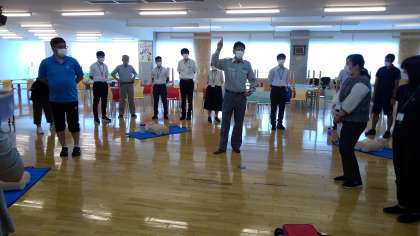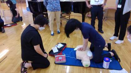 新学期に向けて その1 公開日 2022/08/25 更新日 2022/08/25 芝園の一日 8月25日(木) 今日は新学期に向けて、教職員の研修を行いました。 画像は救命講習会の様子です。消防士の方をお招きして、AEDの使い方の確認などをしました。