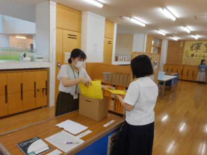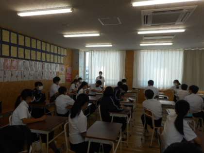2学年の学級活動の様子です。夏休みの課題を提出する生徒の表情を見ているとやり遂げた達成感が伝わってきました。また、2学期の目標を書いたり、教育実習生に自己紹介をしたりする姿も見られました。