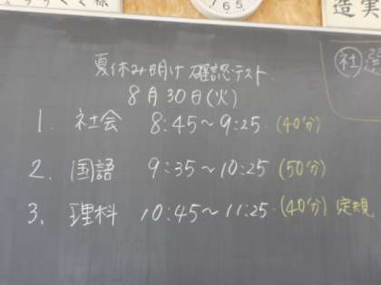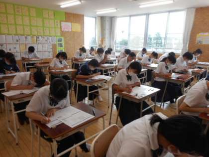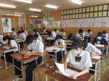 2年生の夏休み明けテストの様子です。テスト前の休み時間にも、友達と学習してきた内容を確認する姿が見られました。夏休み中の成果が表れるといいですね。