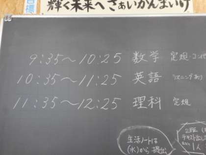 3年生の実力テストの様子です。ほどよい緊張感のなかで、生徒は真剣に取り組んでいました。受験は団体戦とも言われます。みんなで目標に向かって取り組む姿勢がステキですね。