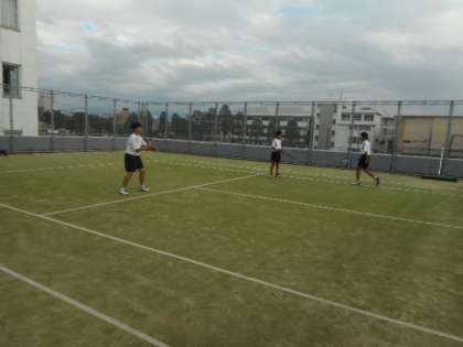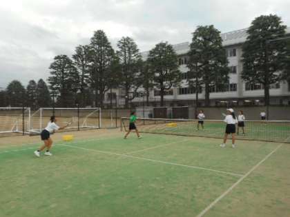 女子ソフトテニス部は、明るい挨拶と掛け声で、コートを元気に駆け回っていました。