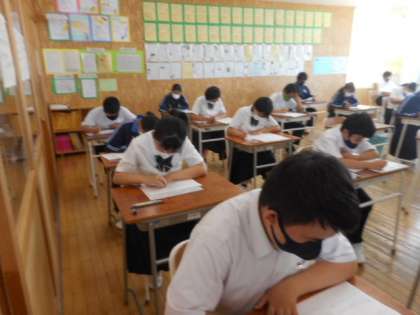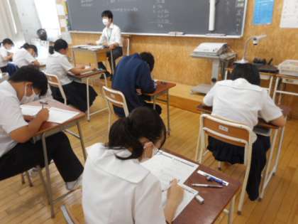 2年生の夏休み明けテストの様子です。2日目は、英語と数学に取り組み夏休みの夏休みの課題から問題が出題されました。夏休みの取り組みの成果は発揮できたでしょうか?