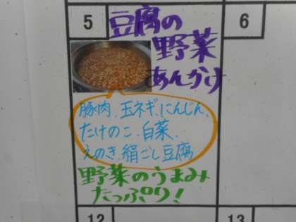 豆腐の野菜あんかけは、野菜のうま味がたっぷりで美味しかったです。