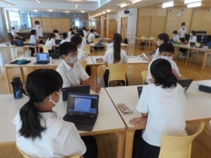 生徒議会・専門委員会 公開日 2022/09/05 更新日 2022/09/05 芝園の一日 9月5日(月) 放課後に、生徒議会・専門委員会を行いました。2学期の活動内容について確認しました。生徒議会では、クロームブックを活用して、意見を交流させました。よりよい学校生活になるように活発に意見を交換しました。