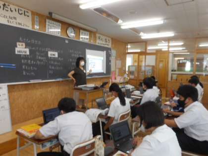 1−Bの家庭科の授業風景です。気候による住居の特徴を、クロームブックを活用して確認しました。教科書のQRコードを読み込むと資料を見ることができます。