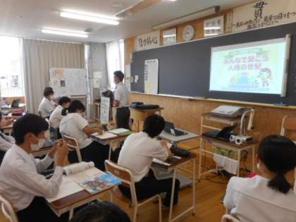 3−Aの社会の授業の風景です。今日の授業のテーマは「人権について」でした。「人権」とは何か?また、普段の生活の中でどのようなことが人権問題として取り上げられかなど考えました。