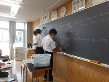 3−Bの英語の授業風景です。今月末に訪れる予定の広島市について書かれた長文を読み取りました。読解力を問う設問では、分かったことを黒板に書いて発表しました。