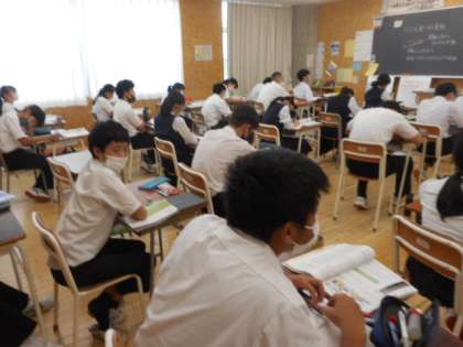 落下運動について 3−D理科 公開日 2022/09/08 更新日 2022/09/08 芝園の一日 9月8日(木) 6限 3−Dの英語の授業風景です。落下運動について学習しました。観察の結果をもとにして法則性について考えました。