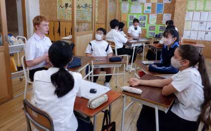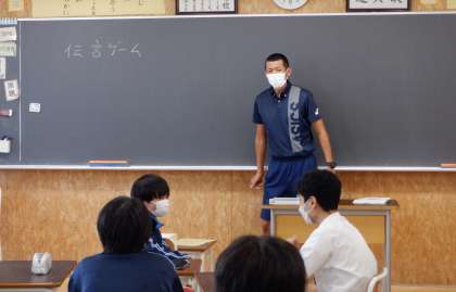 仲間との絆を深める 2−D学活 公開日 2022/09/09 更新日 2022/09/09 芝園の一日 9月9日(金) 3限 2−Dの学活の授業風景です。今日は構成的グループエンカウンターのエクササイズを行って、仲間との絆、信頼関係を深めています。 みんな笑顔で、楽しそう!