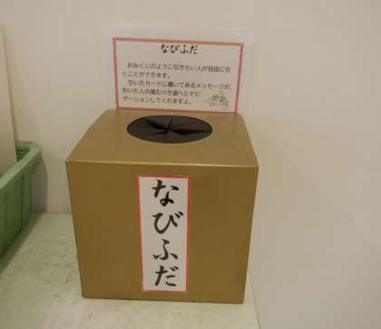 この箱の中には、おみくじのように札が入っていて引くことができます。