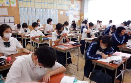 基礎・基本を確実に 2−C国語 公開日 2022/09/12 更新日 2022/09/12 芝園の一日 9月12日(月) 2限 2−Cの国語の授業風景です。授業の始めに漢字プリントを行っています。中学校で学習する漢字や熟語を、徹底的に楽しく学習しています。