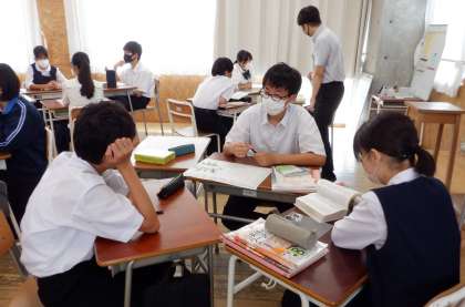 英語でクイズ 2−A英語 公開日 2022/09/13 更新日 2022/09/13 芝園の一日 9月13日(火) 2限 2−Aの英語の授業風景です。ALTの先生と一緒に、班対抗英語クイズ大会で楽しく学習をしています。