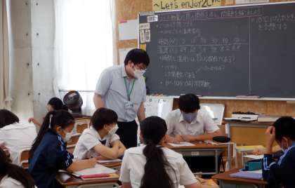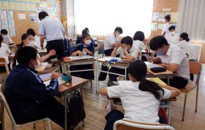 教育実習生も頑張っています 3 2−C数学 公開日 2022/09/13 更新日 2022/09/13 芝園の一日 9月13日(火) 2限 2−Cでは、教育実習生が数学の授業をしています。グループで話し合いながら、問題の解決を図っています。