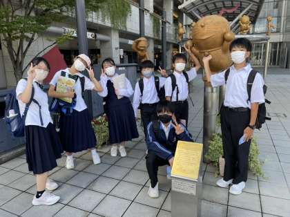 9月21日(水) 高岡駅前での活動の様子です。ドラえもんの散歩道です