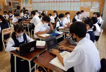 1−Aの家庭科の授業風景です。住居の分野の学習をしています。