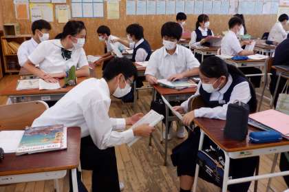 ペアで楽しく学習 2−A英語 公開日 2022/09/23 更新日 2022/09/23 芝園の一日 9月23日(金) 2限 2−Aの英語の授業風景です。英語では、よくペアで読みの練習をします。今日も楽しく、積極的に学習を進めています。よい雰囲気ですね!