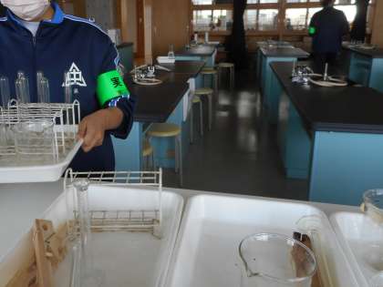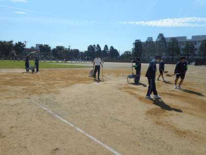 グラウンドの整備や理科室の片付けを黙々と行っていました。学校生活は、たくさんの方の支えで成り立っていることを学びました。
