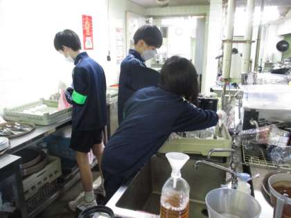 グランテラス富山での午後の体験は、調理場での洗い物や調理補助、食事の配膳、後片付けを行っていました。ボランティアの担当の方に「報連相」をしっかり行い、取り組んでいました。