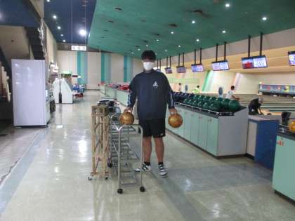 午後からの活動では、使い終わったボウリングの玉を丁寧にアルコールで消毒して、元の場所に片付けていました。