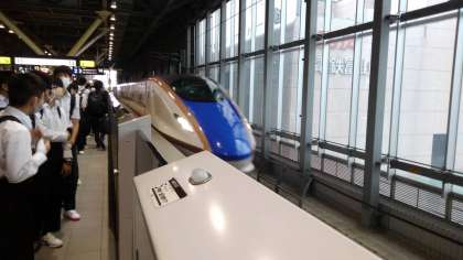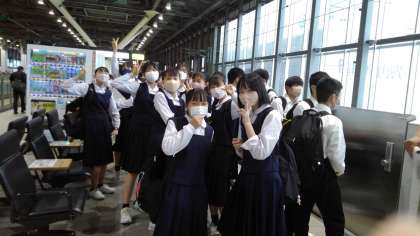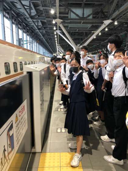 9月28日(水) 新幹線の到着を待っています。修学旅行に行けることを楽しみにしていた生徒たちは満面笑みです。
