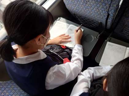 9月28日(水) 車内では、しおりの旅のスケッチのページを書いています。車窓から見える景色ステキです。