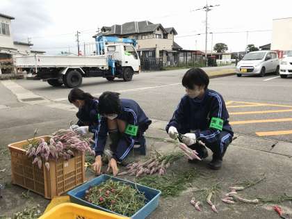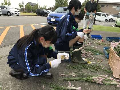 「社会に学ぶ『14歳の挑戦』」 富山県中央植物園 公開日 2022/09/28 更新日 2022/09/28 芝園の一日 9月28日(水) ドライフラワーを作る準備をしています。その他にも、植物のお手入れをしたり、池に入ったりと様々な体験をさせてもらっています。