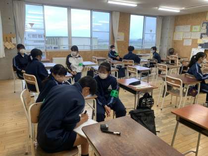 「社会に学ぶ『14歳の挑戦』」 校内での活動 公開日 2022/09/28 更新日 2022/09/28 芝園の一日 9月28日(水) 事業所が定休日等の生徒は、学校で奉仕活動を行いました。用務員さんから仕事のお話を聞き、落ち葉掃除に役立つ道具の改善案を考えました。また、学校のトイレも丁寧に掃除をしました。