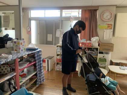 「社会に学ぶ『14歳の挑戦』」 富山市立雲雀ヶ丘保育所 その1 公開日 2022/09/28 更新日 2022/09/28 芝園の一日 9月28日(水) 富山市立雲雀ヶ丘保育所では、子どもたちを寝かしつけたり、一緒に遊んだりしている様子が見られました。優しい笑顔で子どもに接していました。
