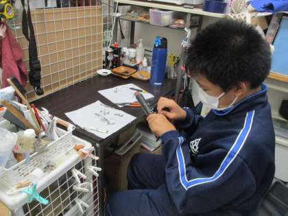 「社会に学ぶ『14歳の挑戦』」 リペアワークス 公開日 2022/09/28 更新日 2022/09/28 芝園の一日 9月28日(水) リペアワークスの活動の様子です。今日はクラリネットの組み立てをしました。