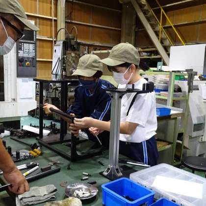 2日間学んだ工具の使い方や長さについての知識を使って、実際に機械の一部を組み立てました。長さは正しいか、直角になっているかなど確認しながら、緊張して組み立てました。