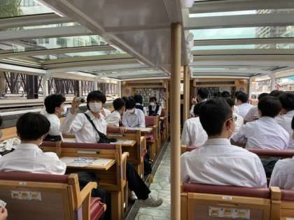 3年生 修学旅行 2日目 公開日 2022/09/29 更新日 2022/09/29 芝園の一日 9月29日(木) 大阪Aコースは、お好み焼き体験を終えて、湊町から「落語家さんと行くなにわ探検クルーズ」に出発しました。
