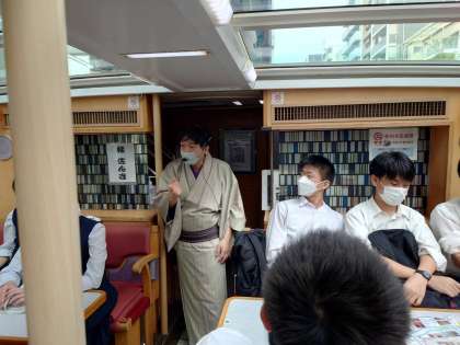 9月29日(木) 大阪Aコースは、落語家の小噺を聞きながら大阪の街を遊覧船で巡っています。