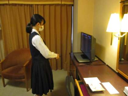 今日の体験では、当日宿泊される客室の最終チェックを行っていました。