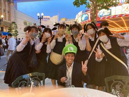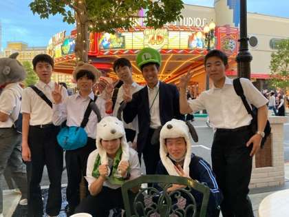 3年生 修学旅行 2日目 公開日 2022/09/29 更新日 2022/09/29 芝園の一日 9月29日(木) みんなでおそろいの耳飾りや帽子でポーズをとっています。おや、先生もよく見るとゲームキャラクターの帽子を被っています。