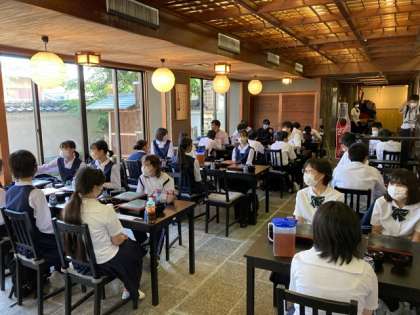 C組は、食事会場に到着しました。待ちに待った昼食です。
