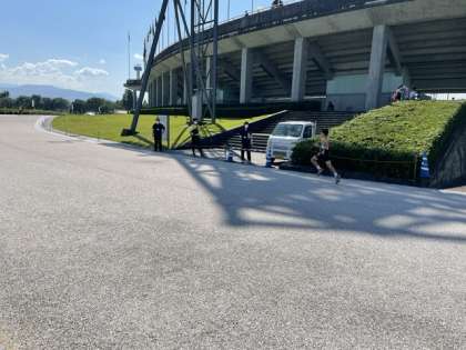 3区から4区へとタスキがつながりました。頑張れ芝中!