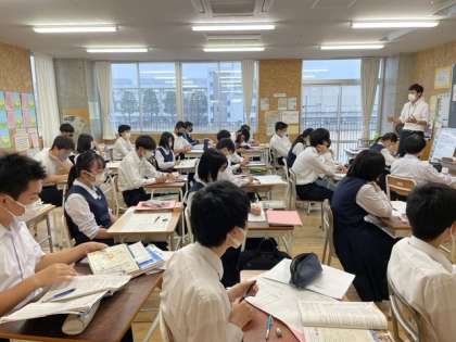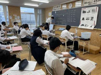 3ーBの英語の授業風景です。修学旅行で訪れた場所について英語で表現しました。