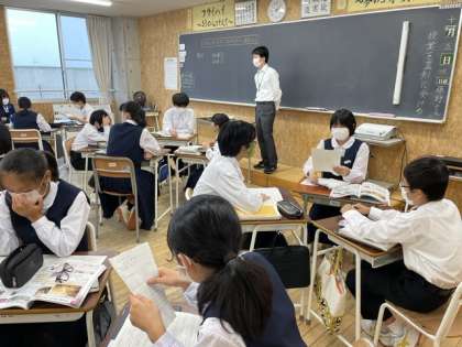 2ーBの社会の授業風景です。リンカンの時代のアメリカについて学習しました。南部と北部の人々の考えの違いを比較してまとめました。