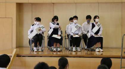生徒会役員選挙 その1 公開日 2022/10/07 更新日 2022/10/07 芝園の一日 10月7日(金) 昨日6日(木)に、生徒会役員選挙を行いました。どの立候補者も、自分の目指す芝園中学校に向けての施策を、熱く伝えていました。 いよいよ生徒会の中心は、3年生から1、2年生にバトンタッチです。「芝園プライド」をしっかり継承し、さらに高みを目指してみんなでよい学校をつくっていきましょう。