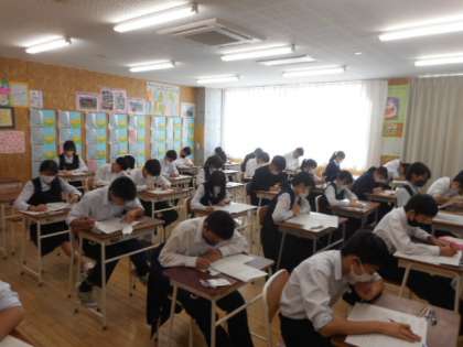 中間考査2日目 3学年 公開日 2022/10/13 更新日 2022/10/13 芝園の一日 10月13日(木) 1限 3学年の中間考査の様子です。英語のテストに挑んでいます。 ひたむきに取り組む姿ステキです。さすが3年生!